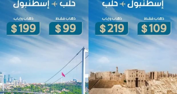 فلاي شام تُعلن عن أسعار خاصة لرحلاتها الجوية بين مطار حلب الدولي وإسطنبول ” مطار صبيحة”