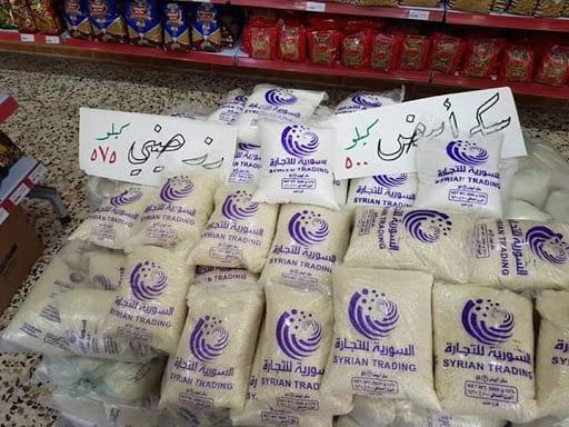 يذكر أن سعر كيلو غرام السكر المدعوم هو 500 ليرة سورية وسعر كيلو غرام الرز المدعوم 600 ليرة سورية، وكانت المؤسسة السورية للتجارة قد بدأت بالبيع بنظام الرسائل المرسلة للمواطنين لاستلام مخصصاتهم من المادتين خلال مدة 48 ساعة من الصالة التي يحددونها سابقاً، وذلك للحد من الازدحام أمام صالات المؤسسة.