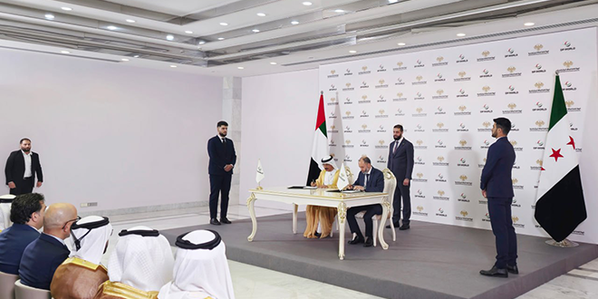 بحضور السيد الرئيس أحمد الشرع، وقّعت الهيئة العامة للمنافذ البرية والبحرية في سوريا وشركة موانئ دبي العالمية اليوم اتفاقية إستراتيجية بقيمة استثمارية تبلغ 800 مليون دولار أمريكي، لاستثمار وتشغيل وتوسعة وإدارة ميناء طرطوس، وتطوير بنيته التشغيلية واللوجستية بما يتوافق مع المعايير الدولية، وذلك في قصر الشعب بدمشق.