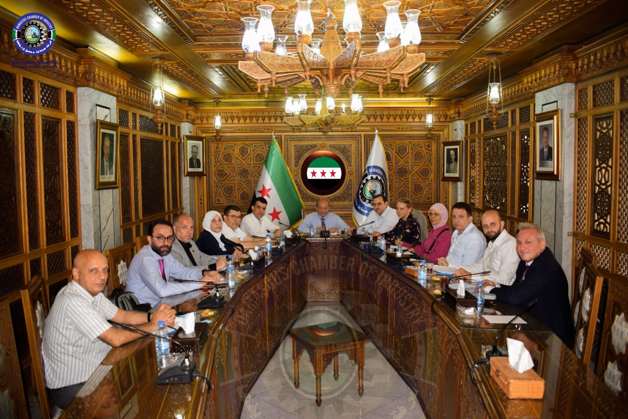 استقبل المهندس محمد أيمن المولوي رئيس غرفة صناعة دمشق وريفها جوليا بيكر وخولة كنينة من الوكالة الألمانية للتعاون الدولي (GIZ) في مقر الغرفة وبحضور كل من: معتز طرابيشي نائب رئيس الغرفة، عبد الله الزايد أمين سر الغرفة، أدهم الطباع خازن الغرفة، كريم الخجا عضو مكتب الغرفة، إياد بيتنجانة، حسان دعبول، د.رضوان عابدين، م.وفاء أبو لبدة، أسامة النن أعضاء مجلس ادارة الغرفة و خلدون دادو مدير الغرفة.