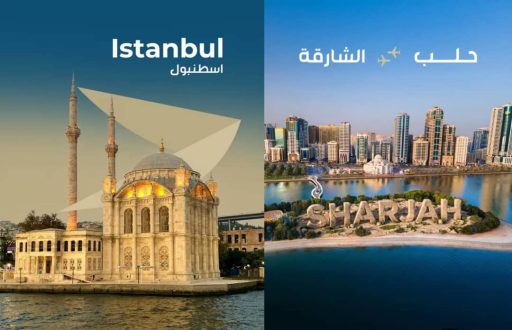 اعلنت فلاي شام عن موعد بدء تسيير رحلات جوية محددة انطلاقاً من مطار حلب الدولي ابتداء ً من 3/12 إلى كل من الشارقة ومرسين وإلى اسطنبول التي أعلن عن اضافتها كوجهة جديدة على خارطة وجهات فلاي شام وذلك اعتباراً من 3/13، وقد جاءت هذه الخطوة تلبيةً لمتطلبات مسافريها سيما في ظل المرحلة والظروف التي تمر بها المنطقة .