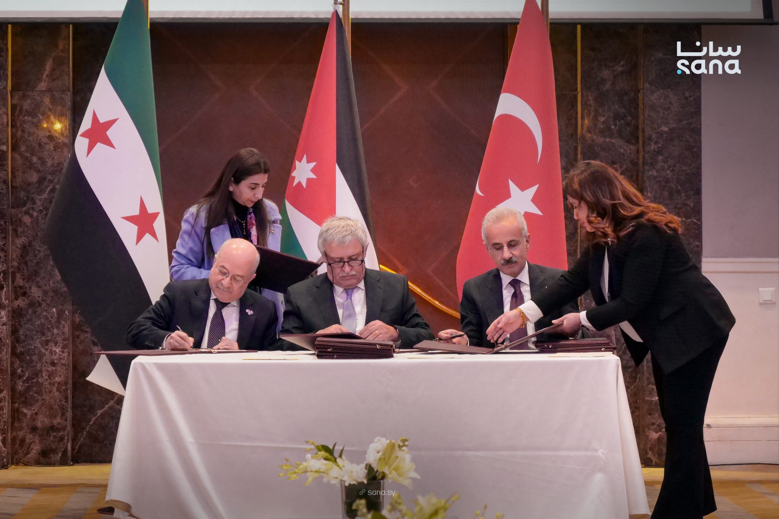 وقع وزراء النقل في سوريا والأردن وتركيا، أمس الثلاثاء، مذكرة تفاهم لتطوير قطاعات النقل والربط اللوجستي، وذلك عقب مباحثات موسعة أجرتها اللجنة الوزارية المشتركة حول تعزيز التعاون والتكامل المشترك في قطاع النقل بين هذه الدول.
